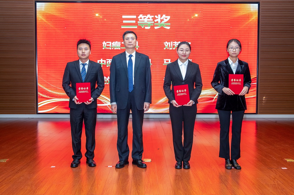 院領(lǐng)導(dǎo)分別為獲獎醫(yī)師頒獎。