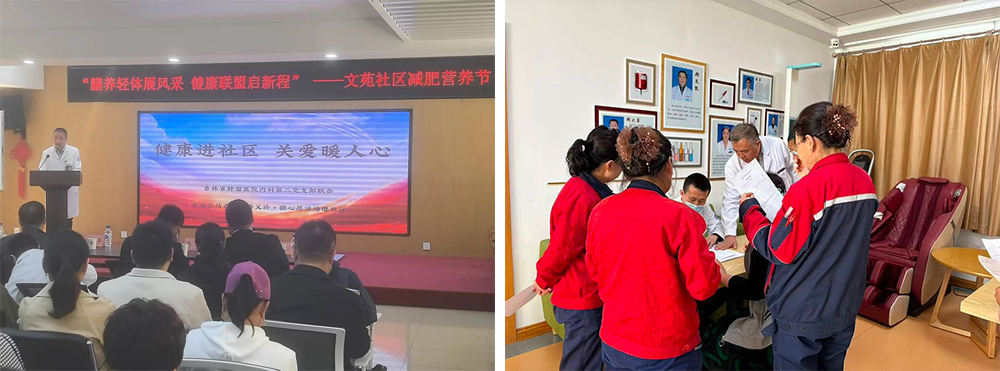 活動中,中西醫(yī)結(jié)合科副主任盧義詳細闡述了義診進社區(qū)理念,強調(diào)增強居民健康意識,推動慢病防控。他表示,當前超重肥胖問題日益嚴峻,與諸多慢性疾病及腫瘤風險緊密相關(guān)??剖覍⒅嗅t(yī)體質(zhì)調(diào)理理念與腫瘤代謝管理技術(shù)深度融合,推廣“調(diào)飲食、調(diào)情志、調(diào)起居”養(yǎng)生法則,形成特色診療體系,通過義診進社區(qū)模式,提升居民科學減重認知,從源頭筑牢慢病防控基石。隨后,吉林省腫瘤醫(yī)院的專家們登上講臺,為居民們帶來了一場營養(yǎng)健康專題講座。專家們用通俗易懂的語言,深入淺出地講解了“高血壓與糖尿病的危害及日常管理”“科學正確認識和辨別‘發(fā)物’”“藏在廚房里的長壽密碼”等科學飲食搭配、輕體減脂原理以及健康生活習慣的養(yǎng)成等內(nèi)容。講座過程中,還設(shè)置了互動環(huán)節(jié),專家們提出問題,邀請居民回答,并現(xiàn)場解析與指導,進一步加深了居民對營養(yǎng)健康知識的理解。
