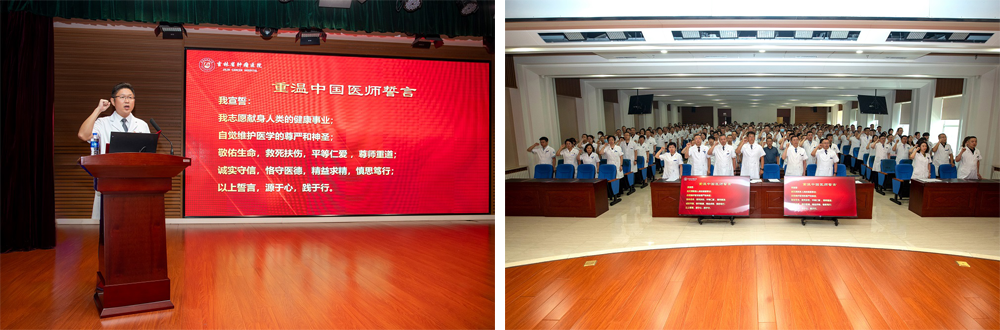 隨后,在院長王茂楠的帶領(lǐng)下,全體參會人員起立誦讀《中國醫(yī)師宣言》,展現(xiàn)了醫(yī)者對職業(yè)的莊嚴(yán)承諾和堅定信念。
