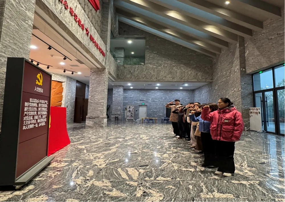在教育基地宣誓廣場,全體黨員面向鮮紅黨旗,舉起右拳莊嚴(yán)宣誓,重溫入黨誓詞。鏗鏘有力的誓言回蕩其間,既是對(duì)革命先輩的深切緬懷,更堅(jiān)定了黨員們牢記身份、踐行初心使命的信念。