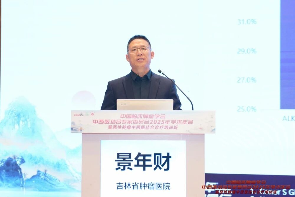 學(xué)術(shù)交流環(huán)節(jié),吉林省腫瘤醫(yī)院中西醫(yī)結(jié)合科副主任景年財以《從預(yù)防腦轉(zhuǎn)出發(fā),重構(gòu)ALK陽性NSCLC“治愈”之路》為題,分享了相關(guān)疾病從預(yù)防到轉(zhuǎn)歸的創(chuàng)新診療策略。